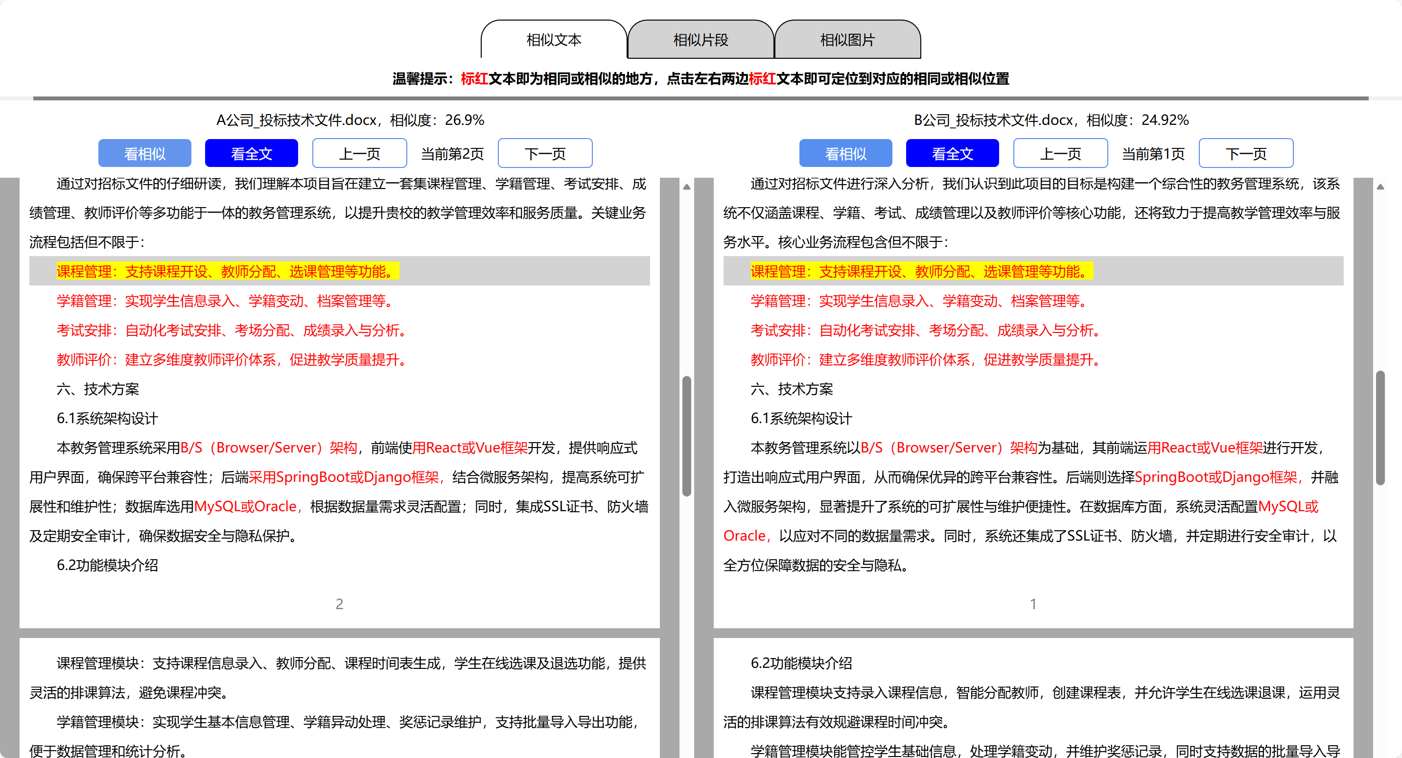 闪电比对,精准定位重复内容,规避投标雷同风险