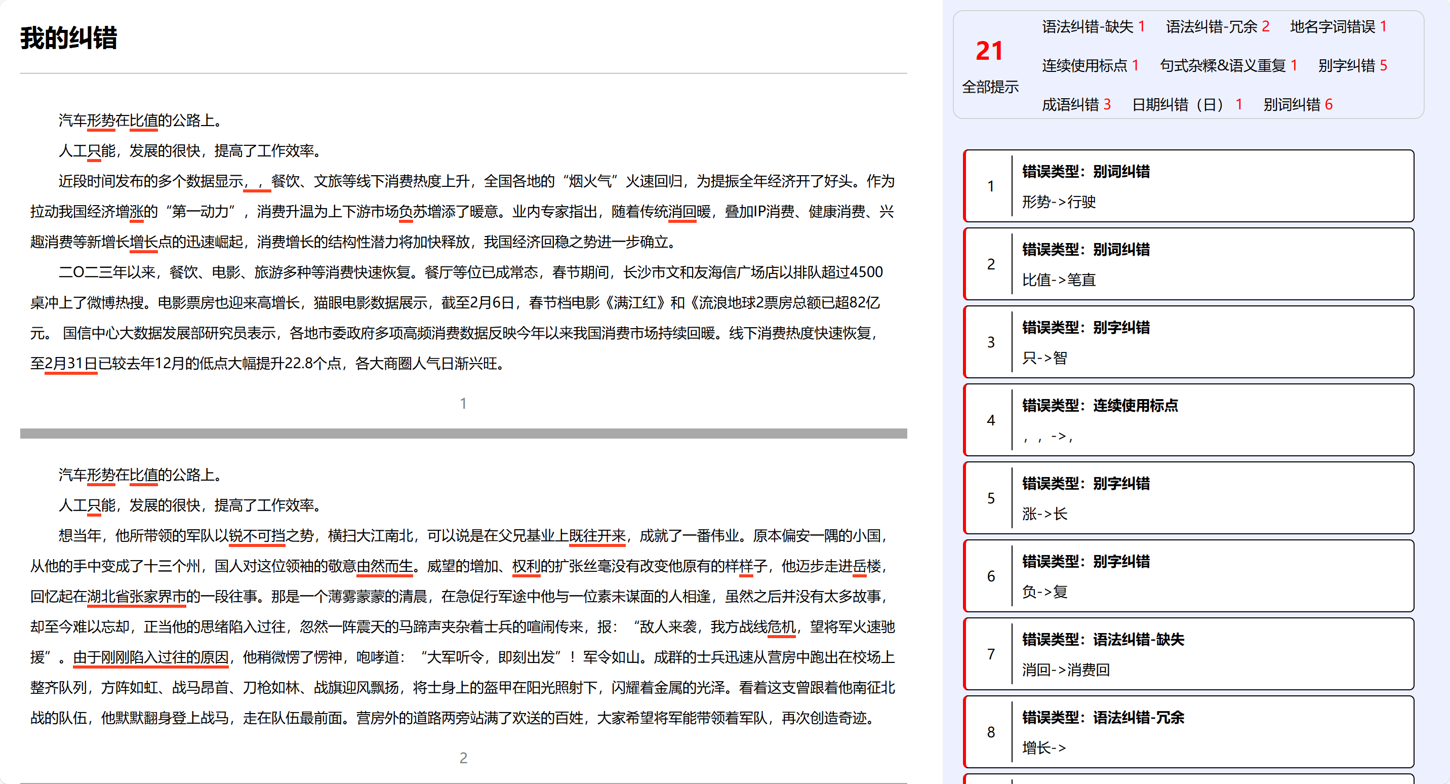 文本纠错不仅找错别字,还能识别一些不恰当的用词,堪比一个专业的文案校对。
